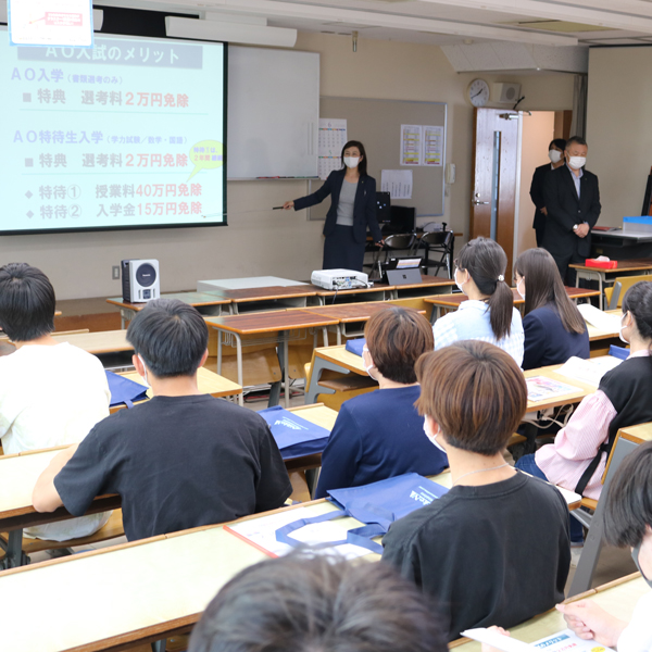オープンキャンパス イベント一覧 すべて 来校型 オンライン型 11/8(土) 09:30~12:30 オープンキャンパス 静岡県浜松市中央区海老塚1-5-7 プレゼント特典あり 友達・保護者OK 奨学金制度の紹介 参加する 11/22(土) 09:30~12:30 オープンキャンパス 静岡県浜松市中央区海老塚1-5-7 プレゼント特典あり 友達・保護者OK 奨学金制度の紹介 参加する 11/22(土) 11:00~12:30 入試説明会 静岡県浜松市中央区海老塚1-5-7 入学に有利 参加する 12/6(土) 09:30~12:30 オープンキャンパス 静岡県浜松市中央区海老塚1-5-7 プレゼント特典あり 友達・保護者OK 奨学金制度の紹介 参加する 12/20(土) 09:30~12:30 オープンキャンパス 静岡県浜松市中央区海老塚1-5-7 プレゼント特典あり 友達・保護者OK 奨学金制度の紹介 参加する 12/20(土) 11:00~12:30 入試説明会 静岡県浜松市中央区海老塚1-5-7 入学に有利 参加する 12/21(日) 09:30~13:00 特別オープンキャンパス 静岡県浜松市中央区海老塚1-5-7 参加する 11/8(土) 09:30~12:30 オープンキャンパス 静岡県浜松市中央区海老塚1-5-7 プレゼント特典あり 友達・保護者OK 奨学金制度の紹介 参加する 11/22(土) 09:30~12:30 オープンキャンパス 静岡県浜松市中央区海老塚1-5-7 プレゼント特典あり 友達・保護者OK 奨学金制度の紹介 参加する 11/22(土) 11:00~12:30 入試説明会 静岡県浜松市中央区海老塚1-5-7 入学に有利 参加する 12/6(土) 09:30~12:30 オープンキャンパス 静岡県浜松市中央区海老塚1-5-7 プレゼント特典あり 友達・保護者OK 奨学金制度の紹介 参加する 12/20(土) 09:30~12:30 オープンキャンパス 静岡県浜松市中央区海老塚1-5-7 プレゼント特典あり 友達・保護者OK 奨学金制度の紹介 参加する 12/20(土) 11:00~12:30 入試説明会 静岡県浜松市中央区海老塚1-5-7 入学に有利 参加する 12/21(日) 09:30~13:00 特別オープンキャンパス 静岡県浜松市中央区海老塚1-5-7 参加する 開催スケジュールがありません。 オープンキャンパスのチェックポイント Q. オープンキャンパスに行くメリットは? A. パンフレットやホームページではわからない学校の雰囲気や特徴を知ることができる。オープンキャンパスは、校舎や施設を見学し、説明を聞いたり、質 問したりすることで、学校の雰囲気や特徴を知ることができるイベントだ。興味のある学校にいくつか参加して比較しよう。 ①入学後の生活をイメージできる 学校の雰囲気が体感でき、また授業・実習を体験できるので、入学後のイメージができる。 ②疑問を解消できる 先生や在校生に、入試や授業、学生生活で気になることなどを直接質問ができる。 ③モチベーションがアップする キャンパスを見たり、授業などを体験することで受験や進学へのモチベーションがアップする。 ④入学後のミスマッチが防げる 入学後に「イメージと違った、こんなはずではなかった」と悔やまないように、入学前に学校への理解を深めることができる。 もっと見る Q. オープンキャンパスってどんなことをするの? A. キャンパス見学や体験授業、学校の説明や個別の相談会など、学校を知ることができる絶好のチャンス!オープンキャンパスは、各学校が独自に工夫を凝らしたものとなっ ている。また、友人と参加できるのはもちろん、保護者の方が同伴できるものも多く、保護者向けの説明会や相談会を同時に開催する学校も増えている。オープンキャンパスは、気になる学校をじっくりと観察できる絶好のチャンス。その主な内容を見ていこう。 ●キャンパス見学ツアー 教室、図書館、食堂、体育施設などさまざまな施設・設備を見学。在校生たちがガイド役となって、説明しながら案内してくれる場合が多い。 ●模擬授業・体験授業 講義や実習などを体験することができる。実際に行われている研究や学びの内容を知る大変よい機会となる。 ●学校説明会 学校全体の説明から、学部・学科・コースの内容説明、就職支援体制や就職実績、奨学金制度の紹介などが行われる。保護者向けの説明会を設けている学校もある。 ●入試説明会 一見複雑な入試方式の特徴やポイントを解説してくれる。入試対策のアドバイスが聞けたり、入試対策講座を実施する学校もあるようだ。 ●個別相談会 学校の担当者に、入試、奨学金、就職支援などの疑問を個別に相談ができる。また保護者向けに個別相談の時間を設けている学校もある。 ●その他 オープンキャンパスの参加が、総合型選抜(AO入試)のエントリーを兼ねていたり、オープンキャンパス会場でエントリー受付を行っていたりする学校もある。 ■タイムスケジュール例1 9:30~ 10:00~ 10:30~ 11:10~ 12:20~ 本人 受付開始 学校説明会 模擬授業 キャンパスツアー 昼食 保護者 受付開始 保護者説明会 模擬授業 保護者相談会 昼食 ■タイムスケジュール例2 9:00~ 10:00~ 10:50~ 12:20~ スクールバス送迎 説明会 キャンパスツアー・ミニ体験授業 座談会形式「先輩と話そう」 ←―――保護者相談・個別相談(希望者)――――→ もっと見る Q. オープンキャンパスに行くための事前準備は? A. 参加予約などでスケジュールを決め、パン